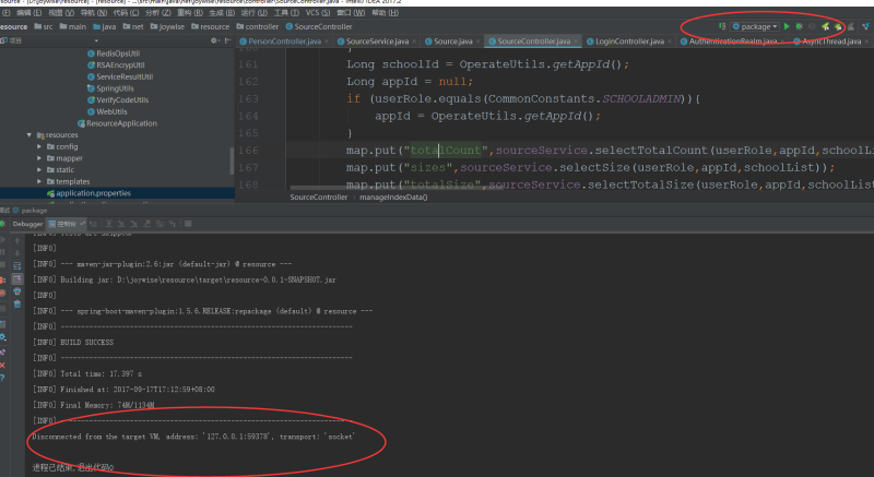 2、运行 package 打包,会在项目根路径target下面生成jar包