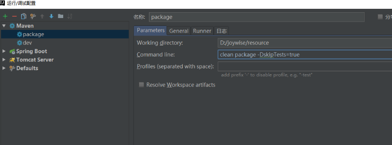 1、在idea上写一个maven 打包命令 : clean package -DskipTests=true (打包跳过测试,打包更快)